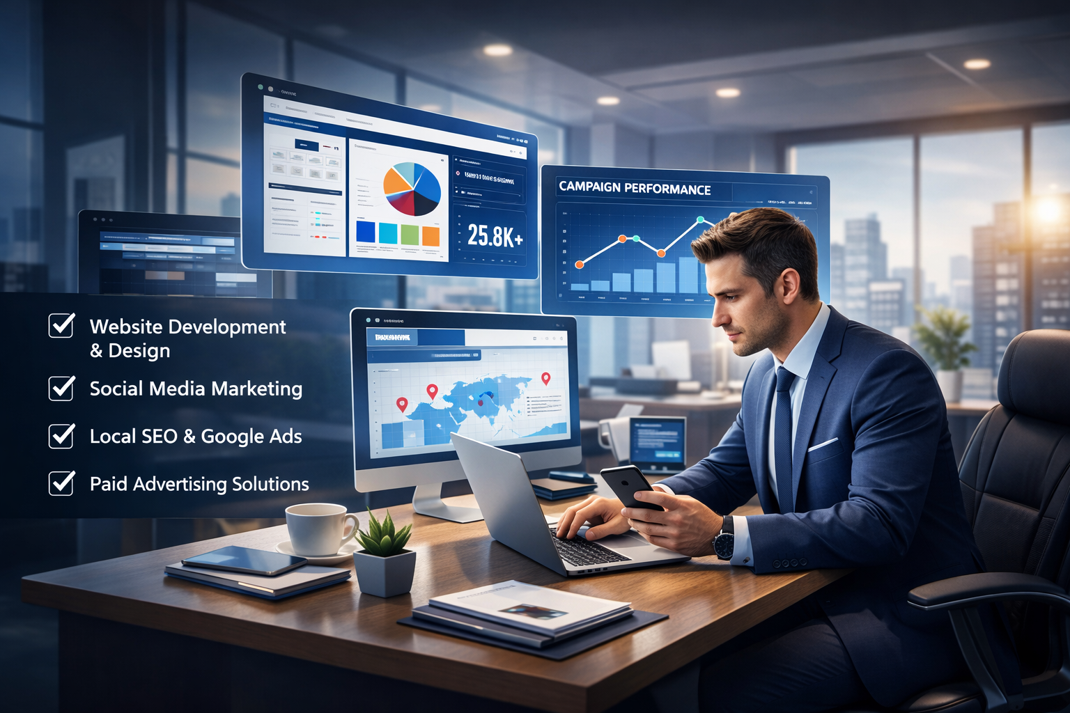 We provide end-to-end digital solutions including website development, social media marketing, paid advertising, and local SEO.
